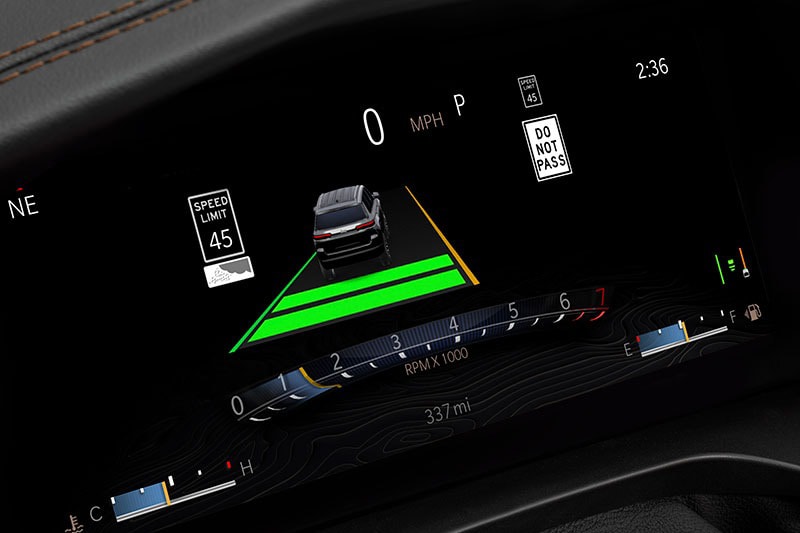 - Fully digital rearview mirror, windshield heads-up display (HUD)