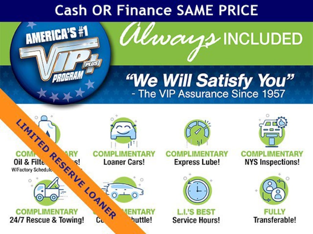 Americas #1 VIP Plus Program includes Complimentary Loaner Cars, UnlimitedOil & Filter changes for 1 yr. & then included with every factorymaintenance, Courtesy Shuttle to work, home or any other location, ExpressLube 30 minutes or less w/ no appointment necessary, Complimentary NYSI, 24/7 Rescue & Towing.
