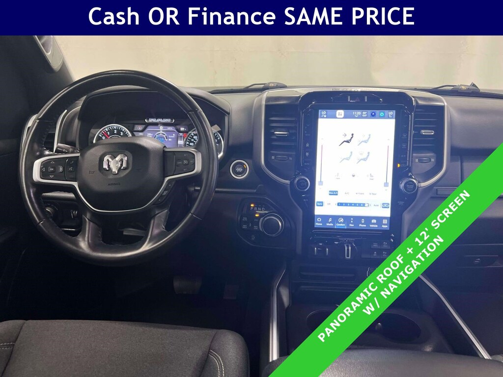Tech that makes life easier is front and center. A large touchscreen multimedia display with Uconnect 5 Nav and a 12-inch interface puts Apple CarPlay, Google Android Auto, HD Radio, SiriusXM with 360L, GPS Navigation, Bluetooth, and a 4G LTE Wi-Fi Hot Spot at your fingertips. The 7-inch color driver cluster keeps key info clear, while steering wheel media controls let you manage audio and calls without taking your hands off the wheel. Comfort upgrades include heated front seats, a heated steering wheel, dual-zone automatic temperature control, power-adjustable pedals, a power 8-way driver seat with lumbar, auto-dimming mirrors, and a rear power sliding window. Premium Lighting Group LED reflector headlamps, LED fog lamps, and LED taillamps enhance visibility. ParkSense Front/Rear Park Assist with Stop and the ParkView Rear Back-Up Camera simplify tight parking. For hauling, Trailer Tow Group with a Class IV receiver hitch, integrated Trailer Brake Control, Trailer Light Check, Trailer Tire Pressure Monitoring System, and Heavy-Duty Engine Cooling bring confident capability. Remote Start, 115V power outlets, a 400W inverter, and 9 amplified speakers with subwoofer add everyday convenience and rich sound & more.